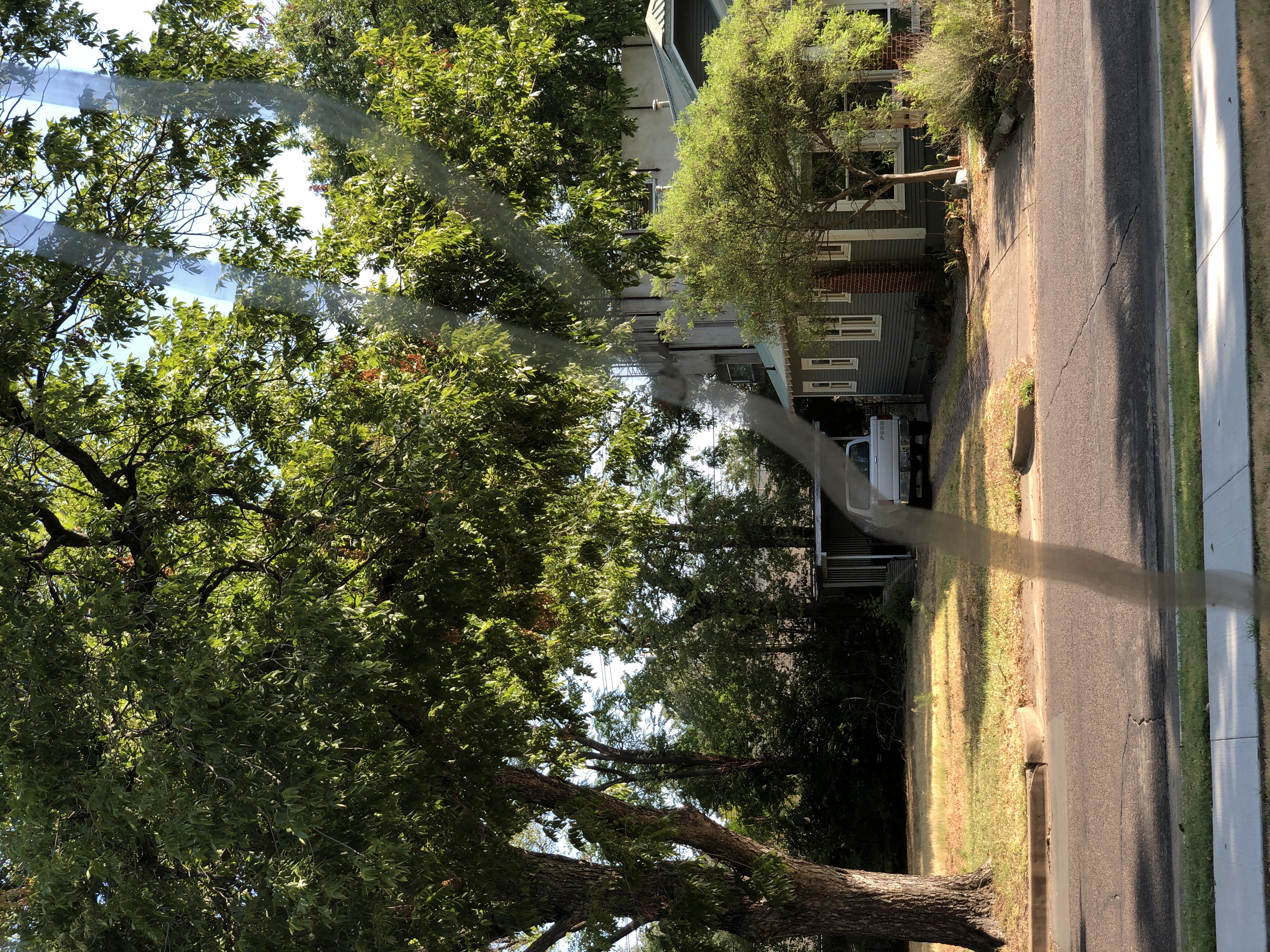 The lines snaking across the glass follow the meanders of tar around the corner on Boland Street, make-do mends that try their best to patch up the cracks. I made a paint from coal, tar's cousin, that washed up as pebbles on the coast of Suffolk, England – it is several million years of squashed plant material, unearthed and tumbled in a grey sea. The lines also sediment, here and there, the reflected tree across the street.